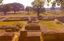 South of the Ashokan Pillar, there is the famous sacred pool- ‘Puskarni’ believed to be the same sacred pool in which Maya Devi took a holy dip just before giving birth to the Lord and also where infant Buddha was given his first purification bath. Architecturally the pool has the projecting terraces in descending order and is reverted with a fine brick masonry.